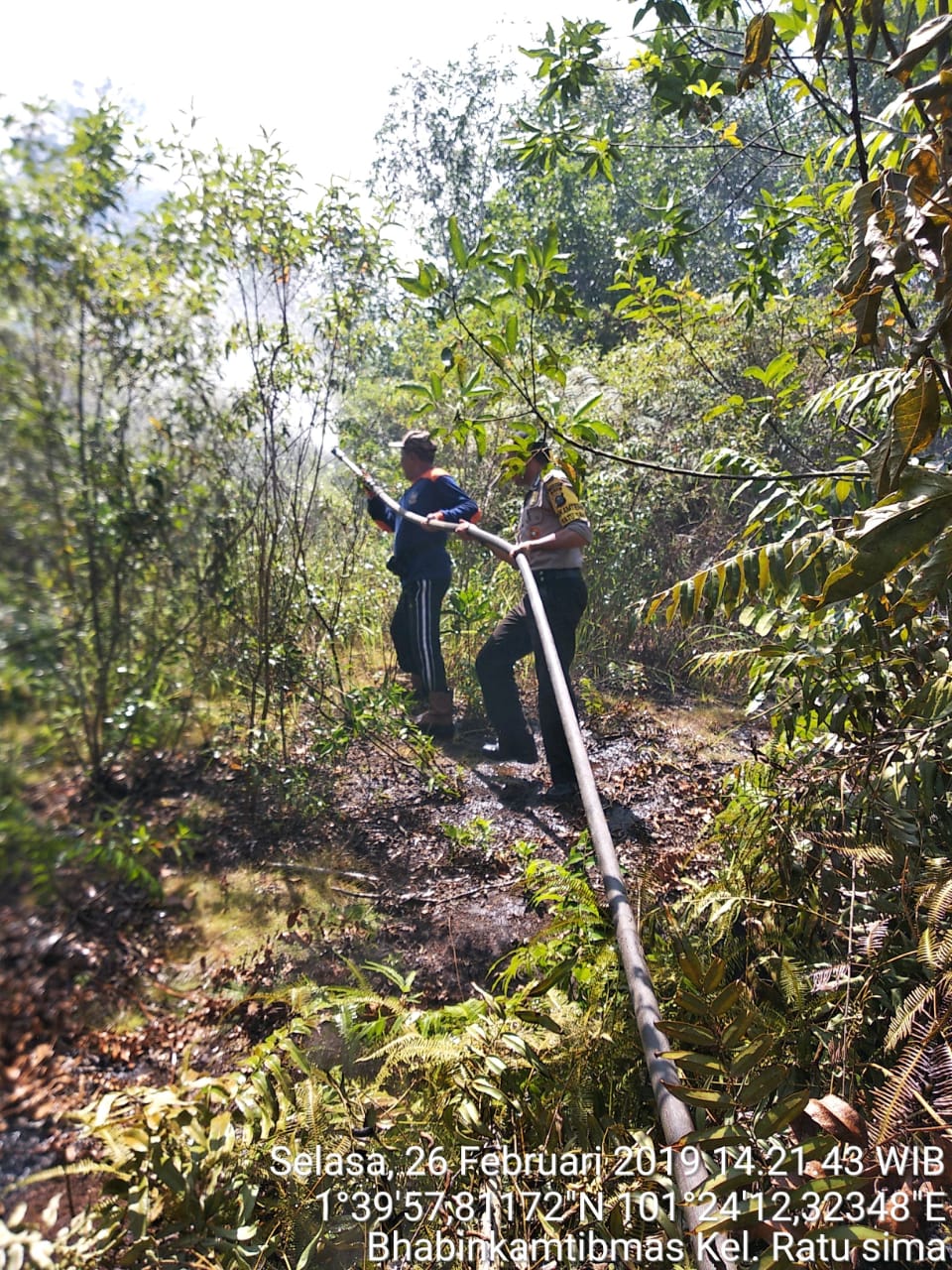 “Kami langsung melakukan upaya pencegahan, agar api tidak meluas hingga menjalar ke pemukiman warga,”ujar Suryadi, Babin Kamtibmas Ratu Sima di sela sela kesibukan pemadaman api Selasa (26/2/29).
