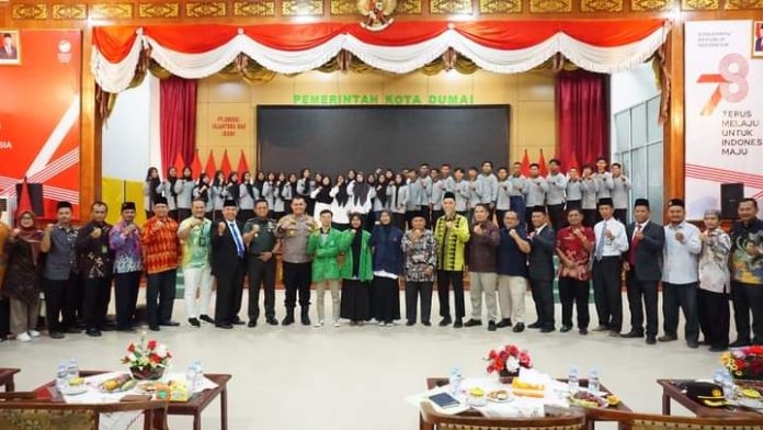 Turut hadir dalam acara tersebut Kapolres Kota Dumai AKBP Dhovan Oktavianto, SH. SIK., MSi dan Dandim 0320 Dumai Lekol Inf Antony Tri Wibowo yang ikut bersama Walikota Dumai memasangkan Jaket Almamater.