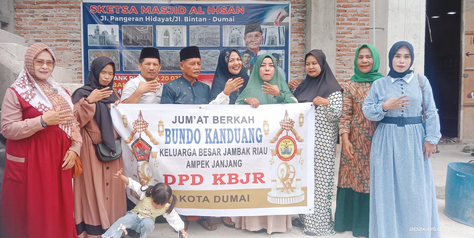 Diakhir acara Jumat Berkah Ketua Pengurus mesjid Al- Ihsan Bapak H.Yusri menyampaikan rasa terima kasihnya kepada Bundo Kanduang Jambak Riau Ampek Janjang Kota Dumai yang telah berpartisipasi menyumbangkan sebagian rezekinya kepada masyarakat dan Jama’ ah sholat Jumat mesjid Al- Ihsan ini,Semoga Persatuan Bundo Kanduang Jambak Ampek Janjang semakin eksis dan kompak selalu serta apa yang diberikan mendapat ganjaran pahala yang berlipat ganda dari Allah .SWT, semoga Bundo Kanduang dan suku Jambak sukses kedepannya.