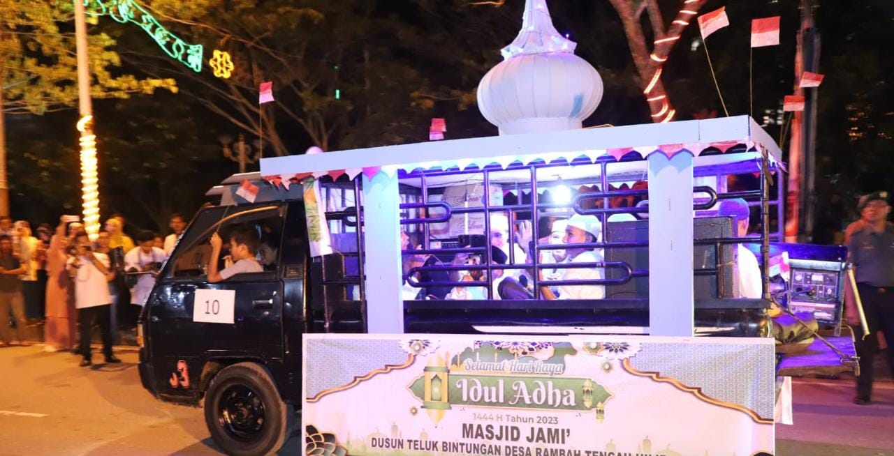 “pawai takbiran merupakan salah satu tradisi yang tidak terpisahkan dari perayaan Idul Adha Oleh sebab itu pada malam yang penuh berkah ini seluruh umat muslim di seluruh dunia begitu pula yang ada di Negeri Seribu Suluk ini beramai ramai mengumandangkan takbir, tahlil dan tahmid, memuji dan memanjatkan rasa syukur kepada Allah SWT” ungkapnya.
