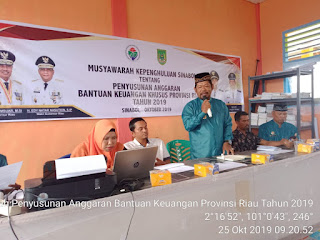 Dumai – Desa Sinaboi Kecamatan Sinaboi Menggelar Musyawarah penyusunan anggaran bantuan khusus Provinsi tahun 2019.