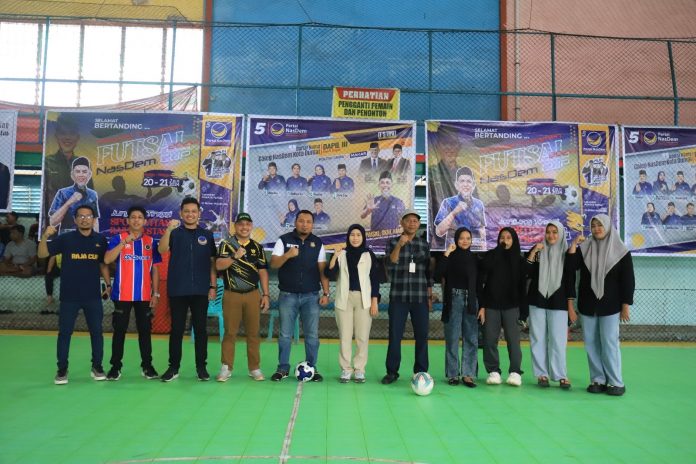 Sorotlensa.com, Dumai – Dewan Pimpinan Daerah (DPD) Partai NasDem Kota Dumai menggelar Turnamen Futsal NasDem Cup 2024 memperebutkan Piala NasDem di Lapangan Popaye Futsal, Jalan Sultan Hasanudin, Sabtu (20/1/2024).
