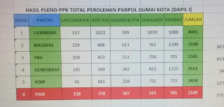 Ini lah daftar beberapa partai dan caleg hasil dari pilihan masyarakat se Kecamatan Dumai Kota, namun bukan berarti yang tidak terpilih tidak baik, hanya saja dalam kesempatan ini semoga dijadikan pelajaran dan pengalaman agar kedepannya lebih baik lagi.
