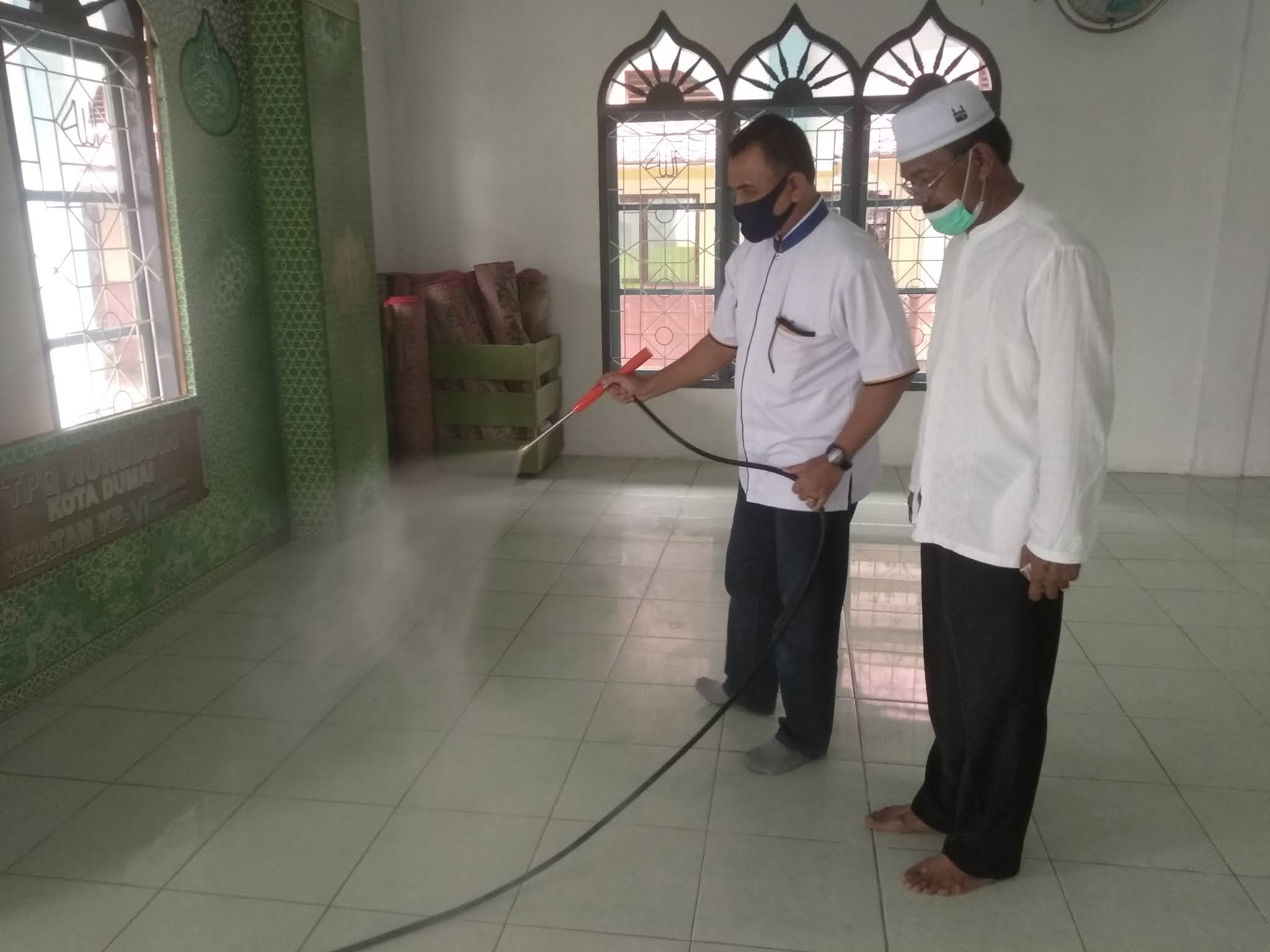 DUMAI – Fraksi Partai Keadilan Sejahtera (PKS) bersama Fraksi Partai Amanat Nasional (PAN) DPRD Kota Dumai berkolaborasi dalam program peduli covid-19 dalam upaya memutus mata rantai penyebarannya dengan menyemprotkan disinfektan ketempat-tempat umum seperti rumah ibadah dan lainnya di Kelurahan Teluk Binjai, Kecamatan Dumai Timur pada minggu 13/09/2020.