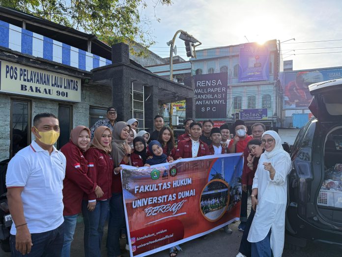 DUMAI – Semangat berbagi di bulan suci Ramadan kembali ditunjukkan oleh mahasiswa Fakultas Hukum Universitas Dumai dengan membagikan ratusan paket takjil kepada masyarakat, khususnya para pengendara yang melintas di Jalan Sukajadi, Sabtu (21/2) sore.
