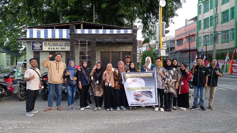 Mereka (Kukerta Unri_red) ikut dan turun langsung memegang bakulan di simpang traffic light Sukajadi, Kota Dumai.