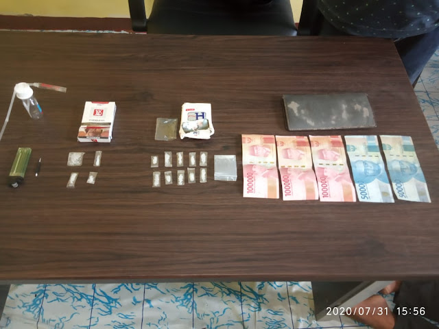 Kapolres menjelaskan, dari tangan tersangka didapati barang bukti diduga Sabu-sabu seberat 3.39 gram, 1 (satu) buah bong, 1 (satu) buah kaca fanbo yang masih berisikan diduga narkotika, 1 (satu) buah korek api warna hijau, 1 (satu) buah kompor yang digunakan membakar narkotika, uang sejumlah Rp. 400.000,- (empat ratus ribu rupiah), 1 (satu) buah tas sandang yang berisikan satu buah dompet warna coklat yang digunakan tersangka untuk menyimpan 3 (tiga) buah plastik kecil warna bening yang berisikan diduga narkotika jenis sabu sisa pemakaian, dan 1 ( satu) buah plastik sedang warna bening yang berisikan diduga narkotika jenis sabu sisa pemakaian.