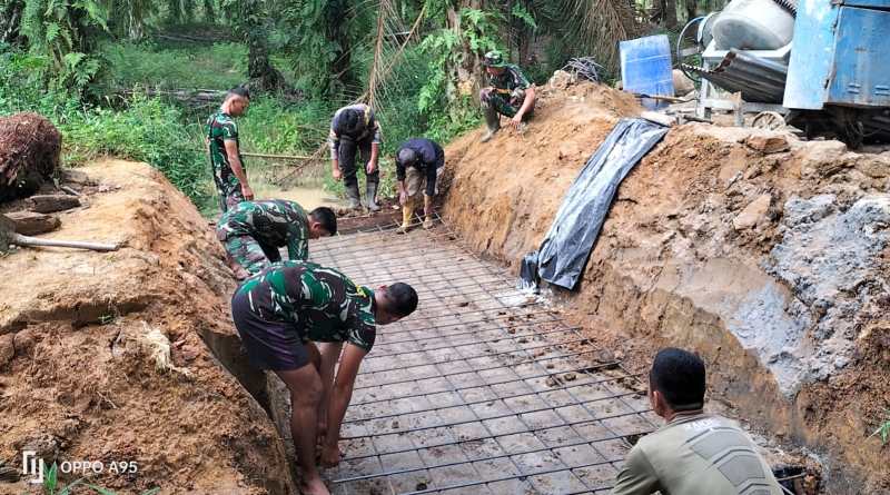 Salah satu sasaran fisik tersebut adalah pembangun box culvert di Jln. Talon Sejati RT. 034 Dusun Boutrem Jaya Kepenghuluan Bangko Lestari Kecamatan Bangko Pusako Kabupaten Rohil yang pengerjaannya terus digesa oleh anggota Satgas TMMD.