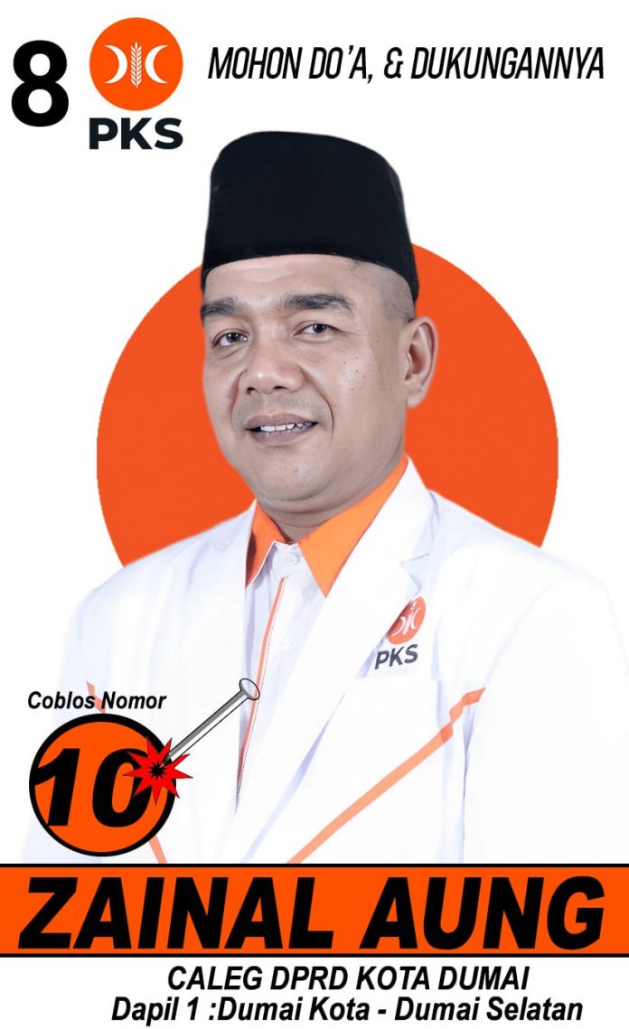 Zainal Aung mengajak masyarakat Kota Dumai untuk memberikan dukungannya agar dirinya dapat terpilih menjadi anggota DPRD Kota Dumai. Ia yakin bahwa dirinya mampu memperjuangkan aspirasi masyarakat.